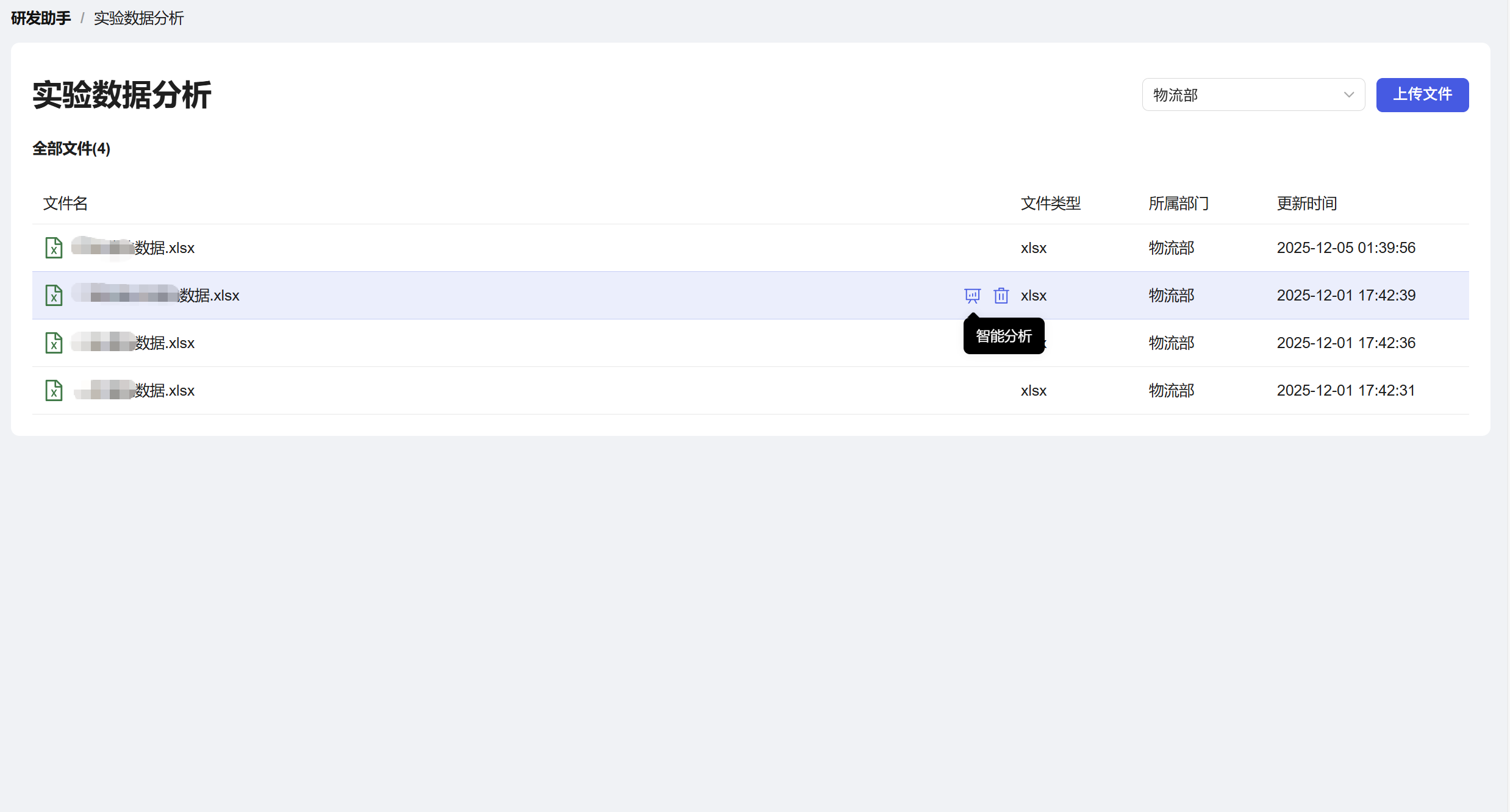 对实验文件分项目组、分部门管理,支持excel、csv、sql数据库等多格式文件上传,可以进行合并、查询。